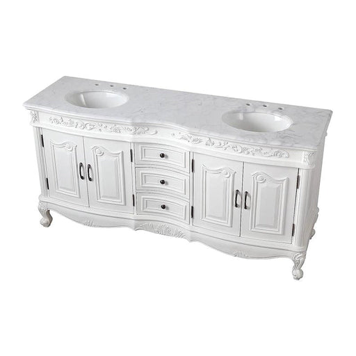 View full detailsSilkroad Exclusive 72" Double Sink Antique White Bathroom Vanity With Carrara White Marble Countertop and White Ceramic Undermount Sink
