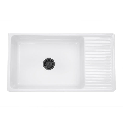 View full detailsNantucket Sinks FCFS36-DB 36" Italian Farmhouse Fireclay Sink with Built-In Drainboard