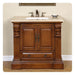 The antique brass hardware adds a vintage charm, enhancing the overall aesthetic of the vanity.