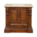 The elegant travertine countertop features a unique vein-cut design, adding a touch of sophistication to your bathroom decor.