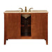 This marvelously vintage bath cabinet featuring antique brass handles, sturdy framework and plenty of storage space. The simple yet stylish design of this vanity will bring appeal to any bathroom and our all natural solid travertine stone counter top will entice your guests for years to come with its gorgeous natural stone pattern, formed long ago by tidal forces and immense pressures deep within the Earth.
